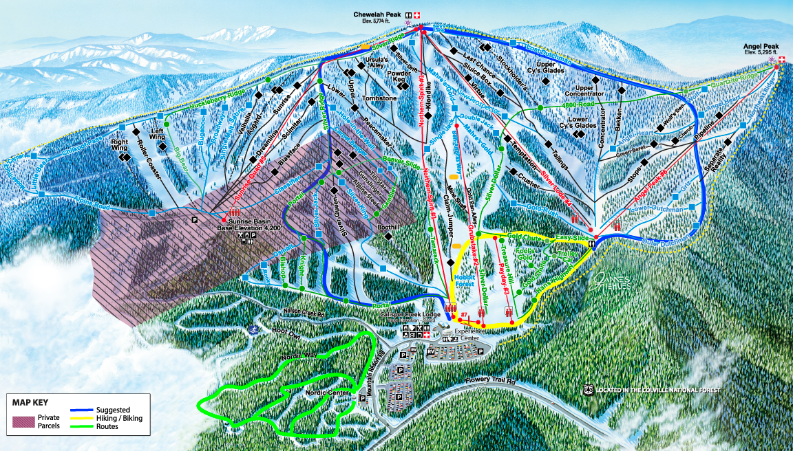 No motorized vehicles are allowed within the Ski Area except for county roads, un-gated USFS roads and parking lots.